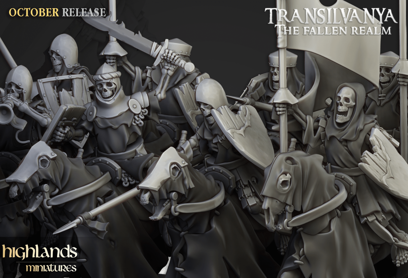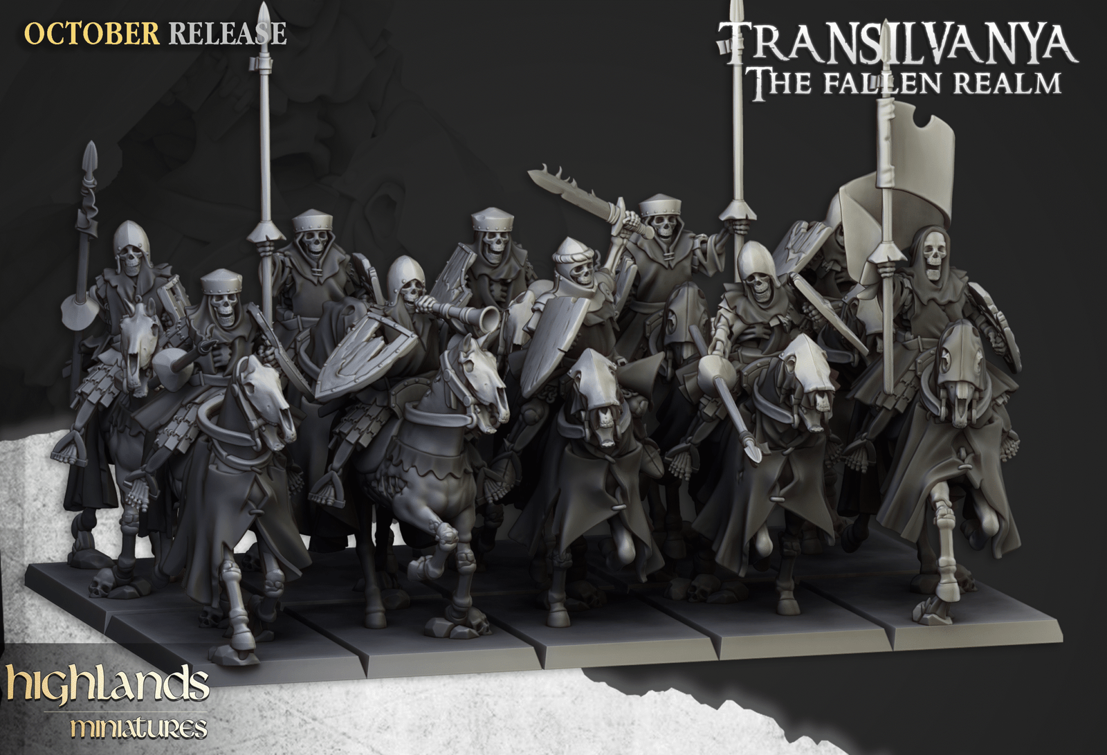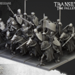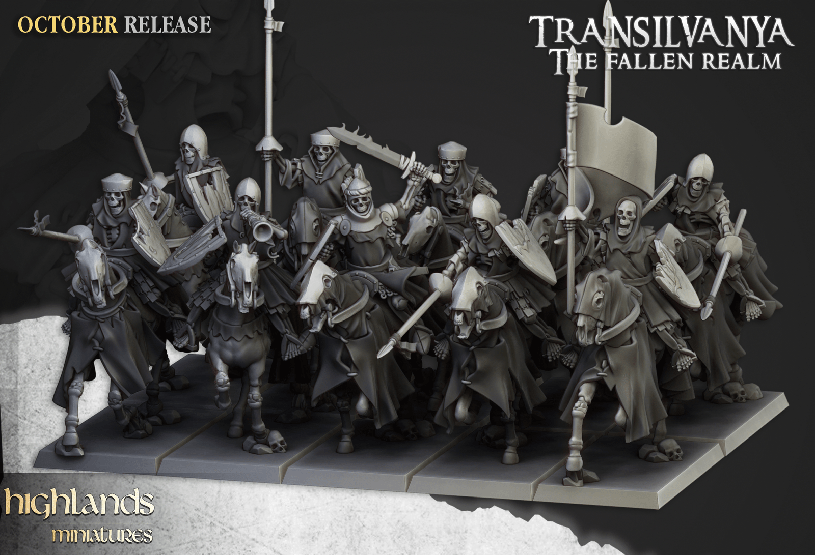 Unidad de Caballería de Condes Vampiros para el juego de mesa Warhammer Fantasy y Old World. El producto contiene 5 Miniaturas de Caballeros Negros con posibilidad de distintos tamaños.