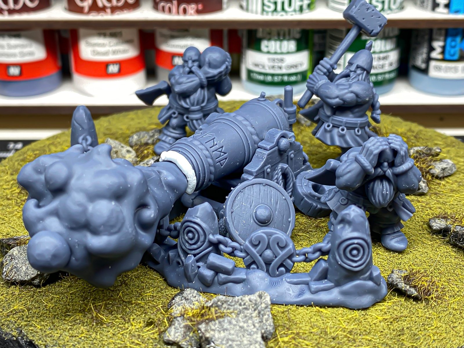Unidad de Máquinas de Guerra de los Enanos para el juego de mesa Warhammer Fantasy y Old World. El producto contiene un Cañón con su tripulación incluida.