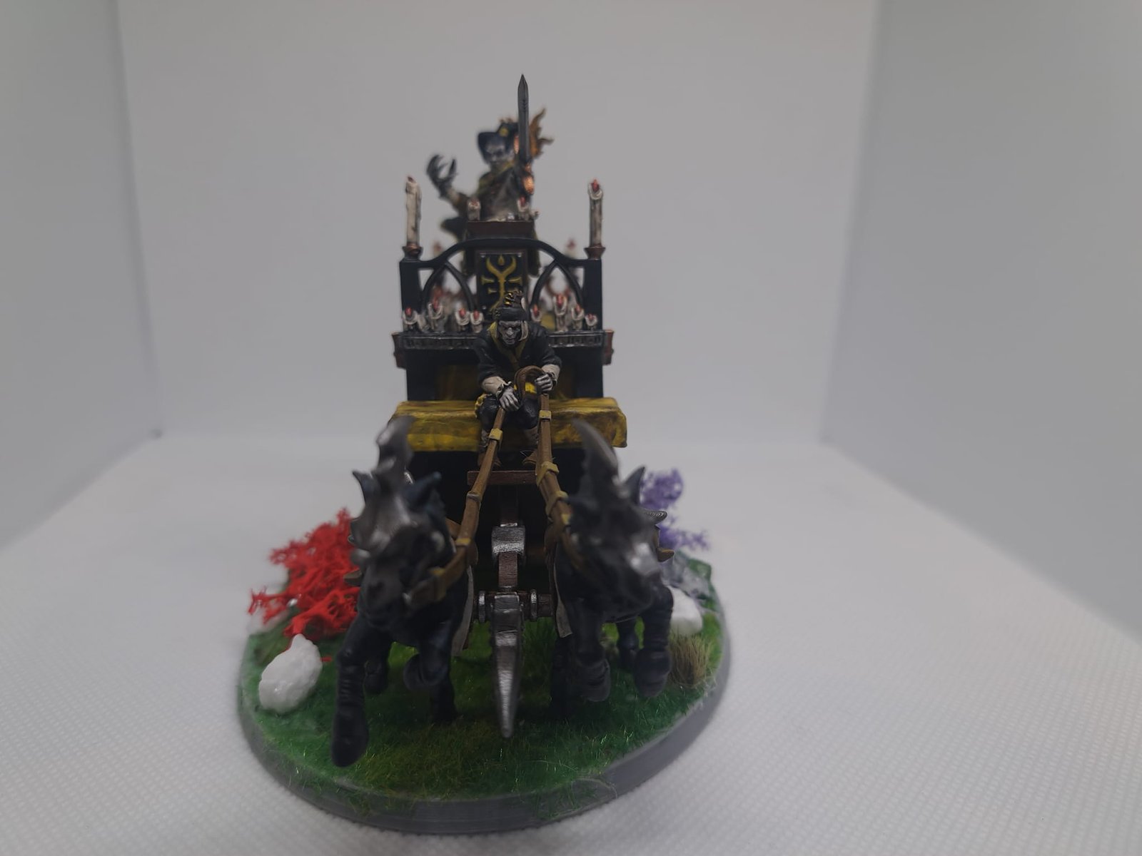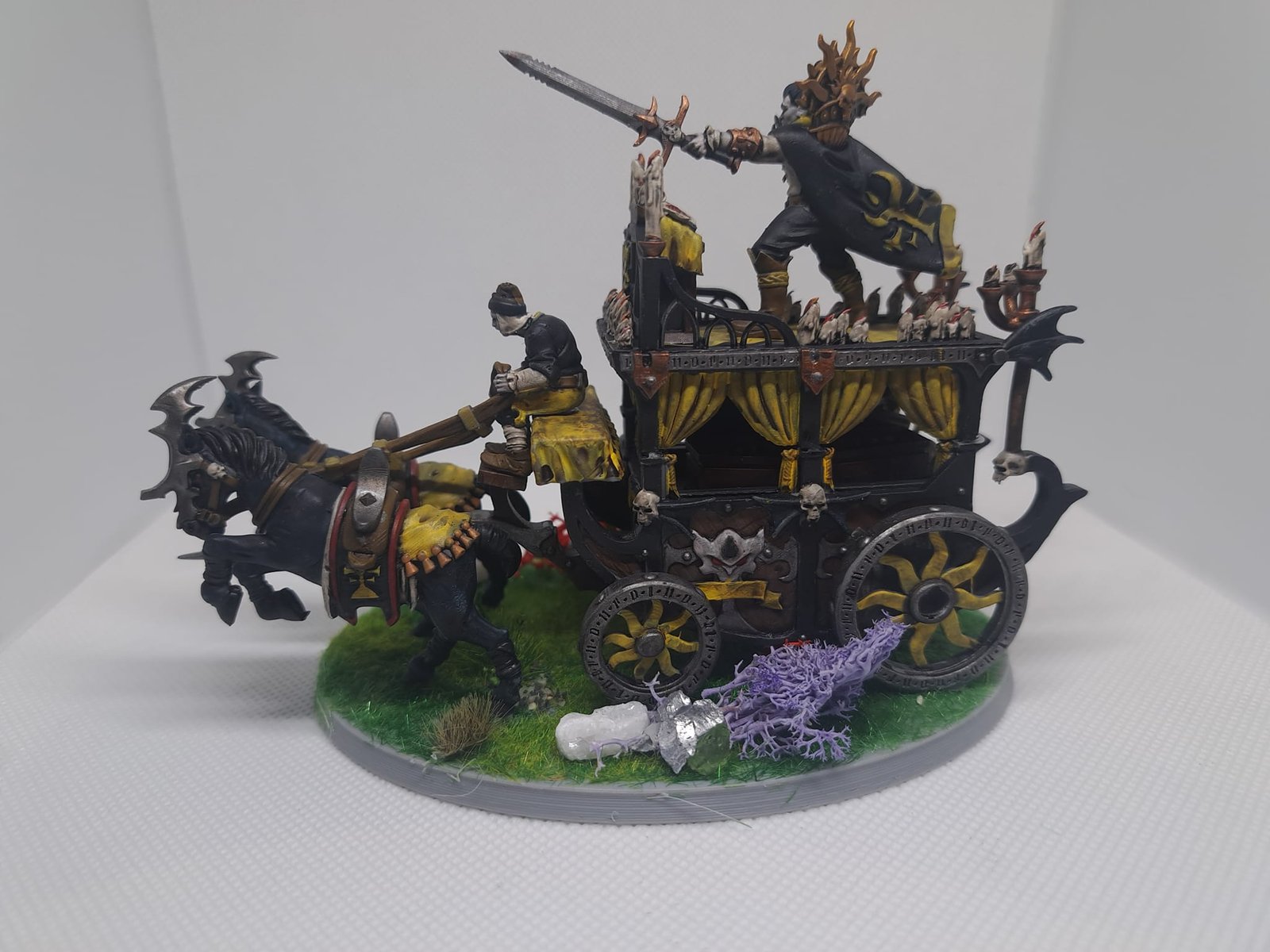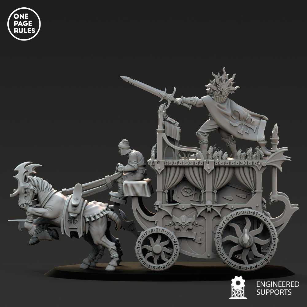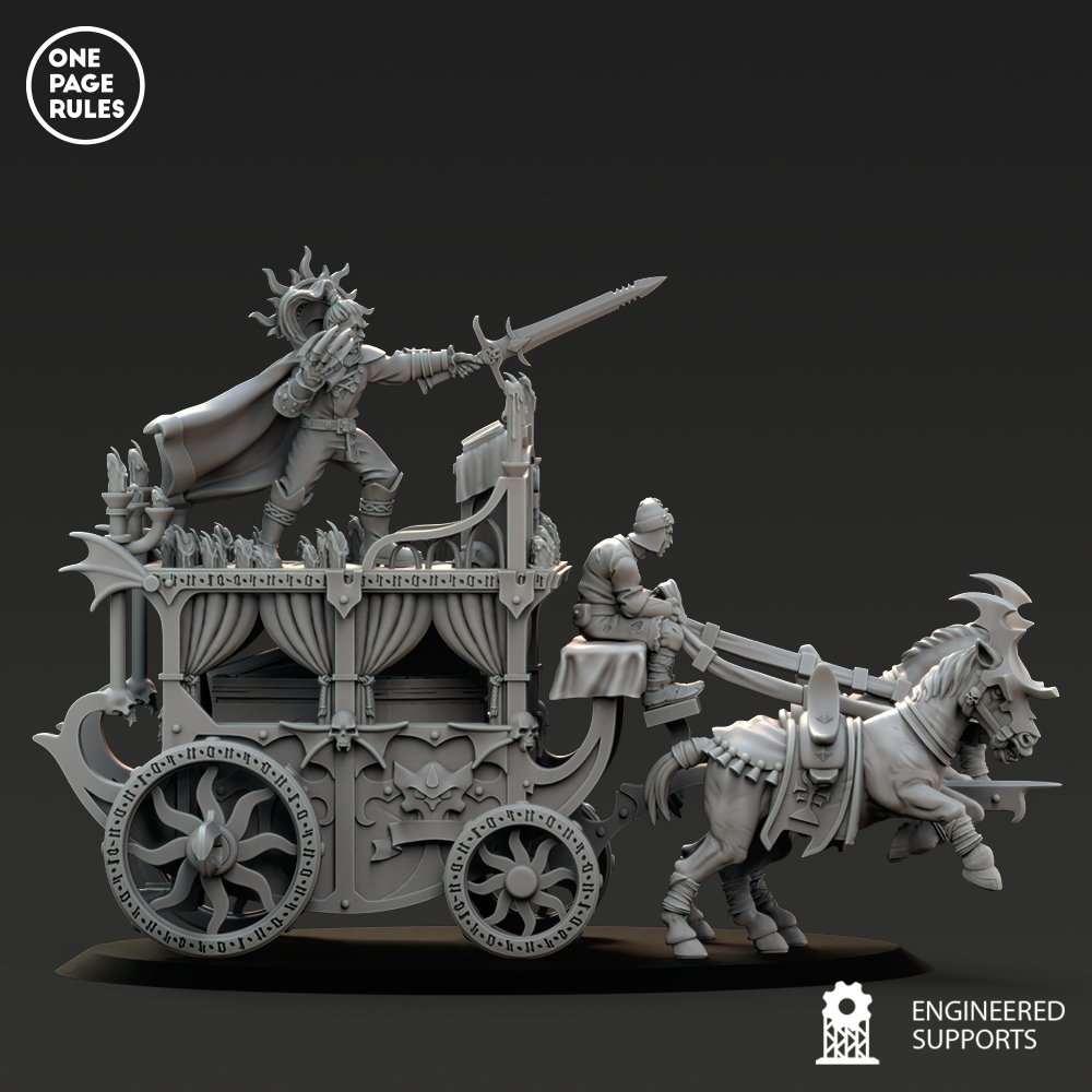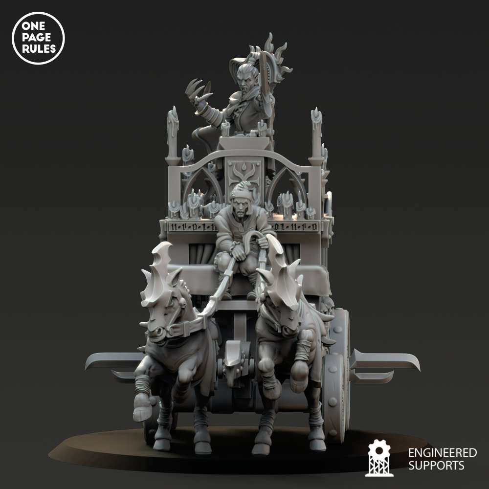 Unidad de Carros de Condes Vampiros para el juego de mesa Warhammer Fantasy y Old World. El producto contiene un Carruaje Negro con su tripulación incluida.