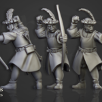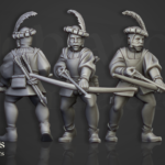 Unidad de Infantería del Imperio para el juego de mesa Warhammer Fantasy y Old World. El producto contiene 5 Miniaturas de Cazadores del Imperio con posibilidad de distintos tamaños.