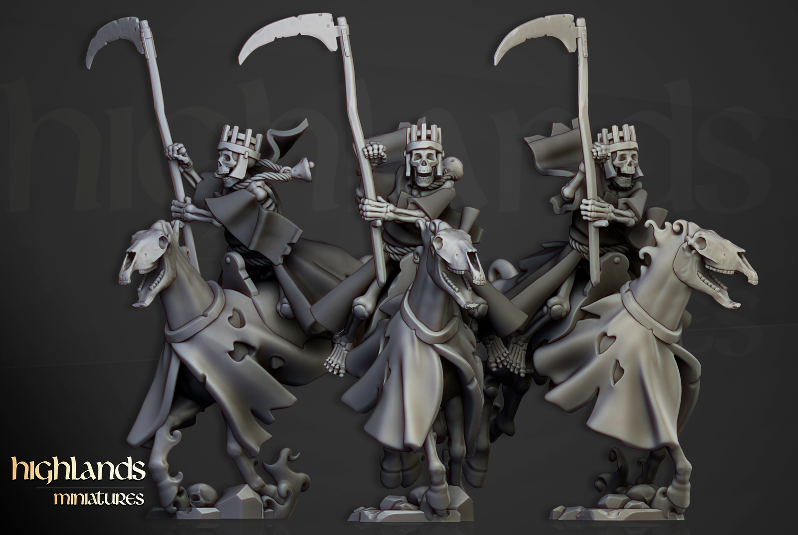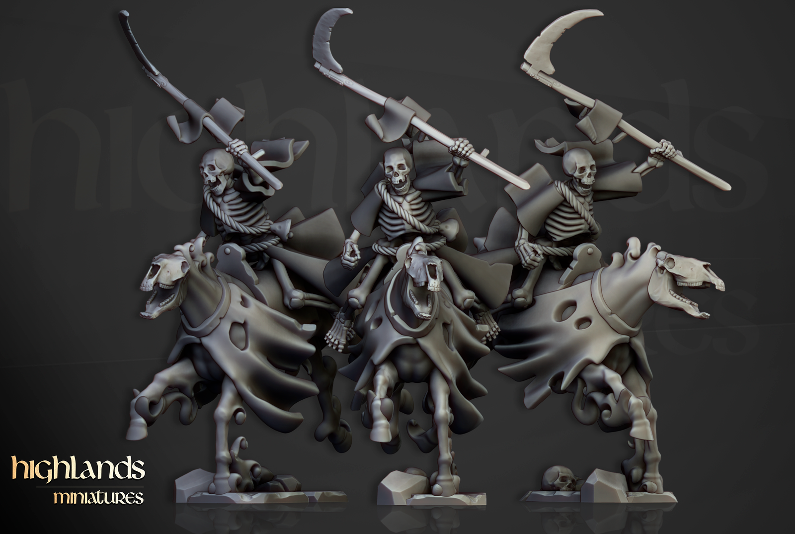 Unidad de Caballería de Condes Vampiros para el juego de mesa Warhammer Fantasy y Old World. El producto contiene 5 Miniaturas de Espectros Condenadores con posibilidad de distintos tamaños.