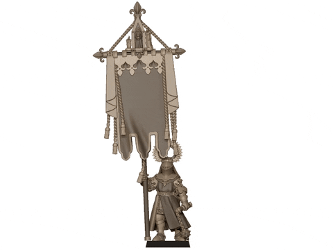 Unidad de Héroes y Personajes de Bretonia para el juego de mesa Warhammer Fantasy y Old World. El producto contiene un Estandarte a pie de Bretonia.
