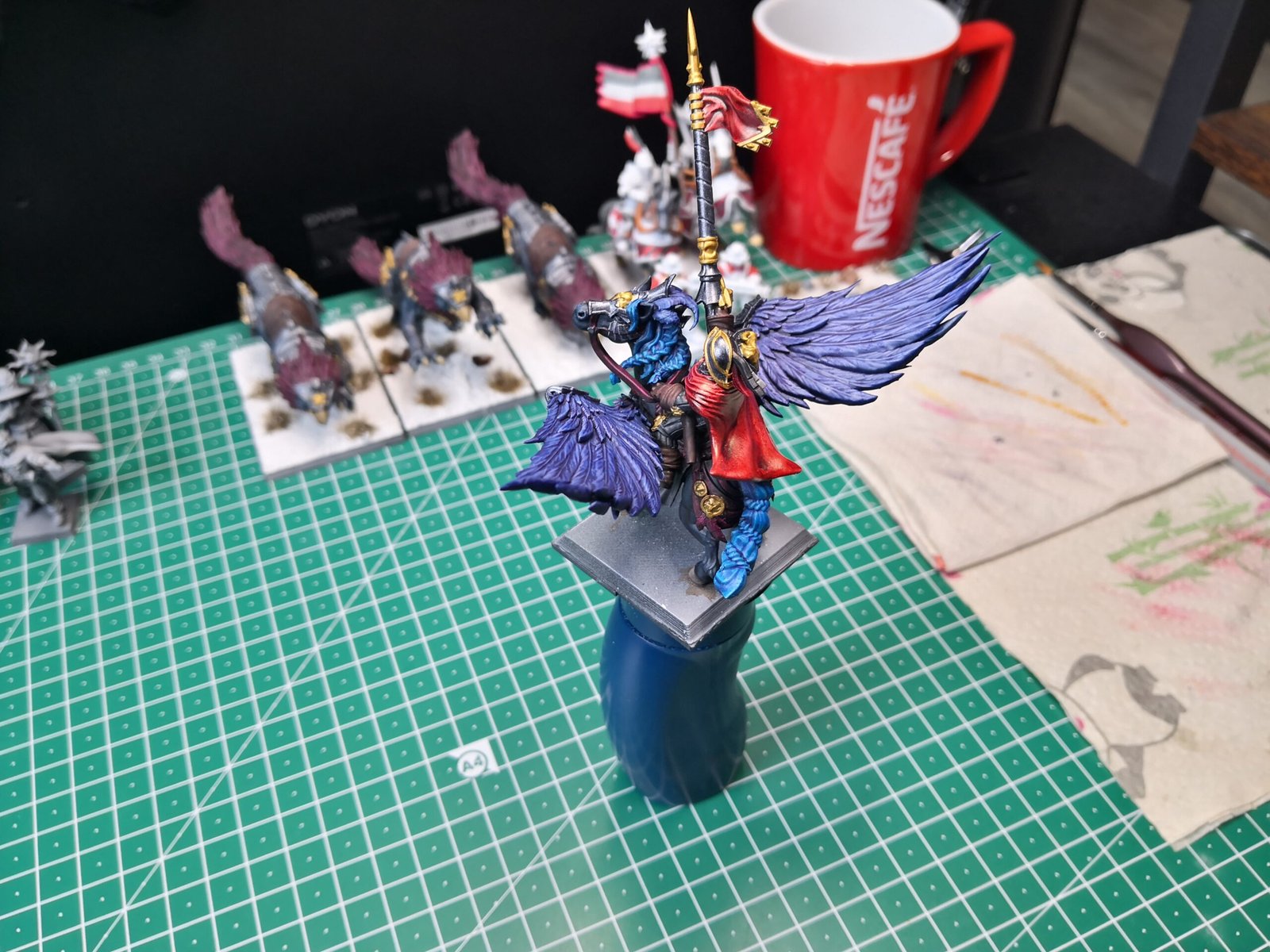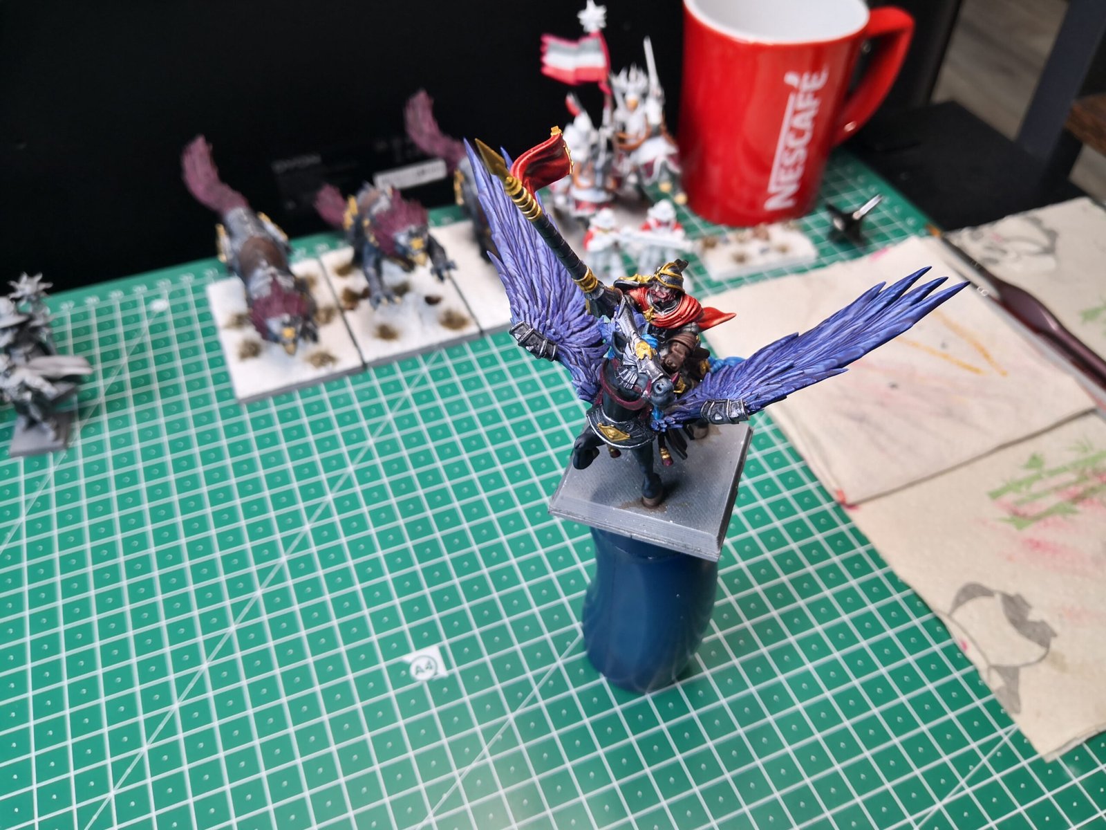 Unidad de Héroe y Personajes del Imperio para el juego de mesa Warhammer Fantasy y Old World. El producto contiene un General en Pegaso.