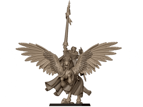 Con su montura el más puro de todos los pegasos, cuenta la leyenda que los Pegasos Reales descienden del propio Glorfinial, el corcel de Agilgar, primer duque de Parravon y compañero del Grial de Gilles le Breton, el primer rey de Bretonia. Nobles y orgullosos, estas criaturas se encuentran entre las bestias más inteligentes y, a menudo, muestran una lealtad excepcional hacia sus amos