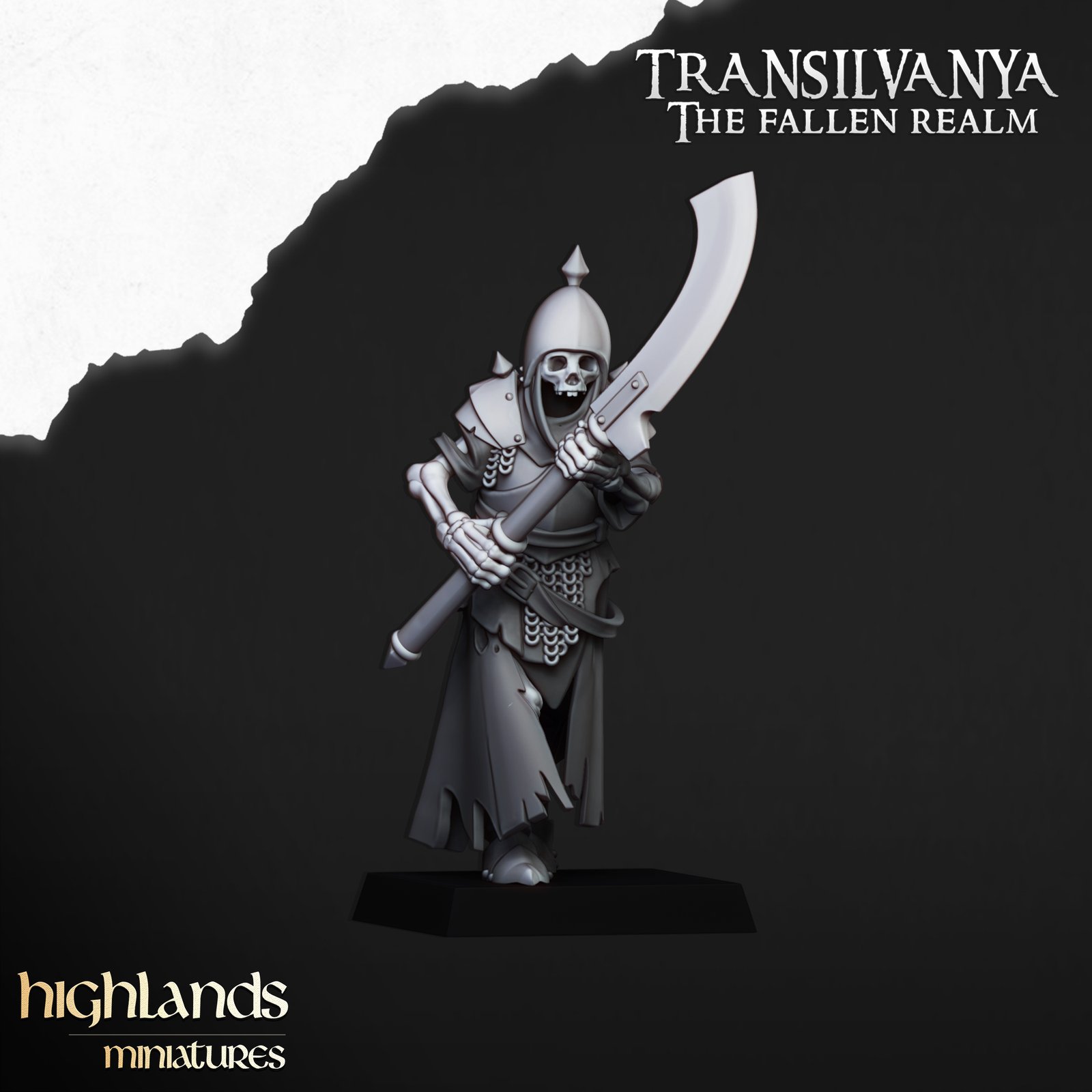 Unidad de Infantería de Condes Vampiros para el juego de mesa Warhammer Fantasy y Old World. El producto contiene 10 Miniaturas de Guardias de los Túmulos /Armas Dos Manos/ con posibilidad de distintos tamaños.