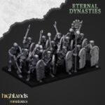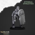Unidad de Infantería de Reyes Funerarios para el juego de mesa Warhammer Fantasy y Old World. El producto contiene 10 Miniaturas de Guerreros Esqueletos con posibilidad de distintos tamaños.