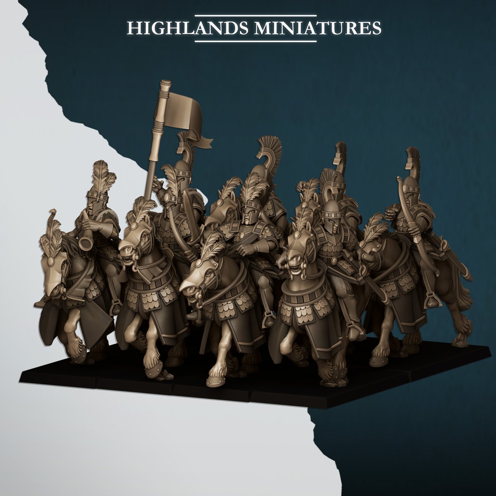 Unidad de Caballería de los Altos Elfos para el juego de mesa Warhammer Fantasy y Old World. El producto contiene 5 Miniaturas de Jinetes de Ellyrion con posibilidad de distintos tamaños.
