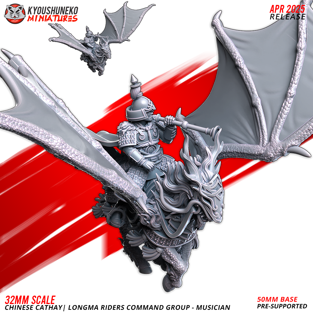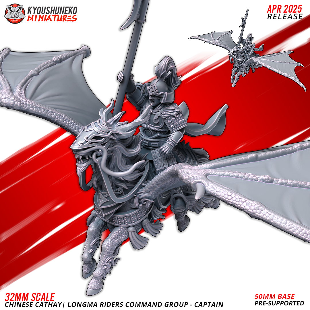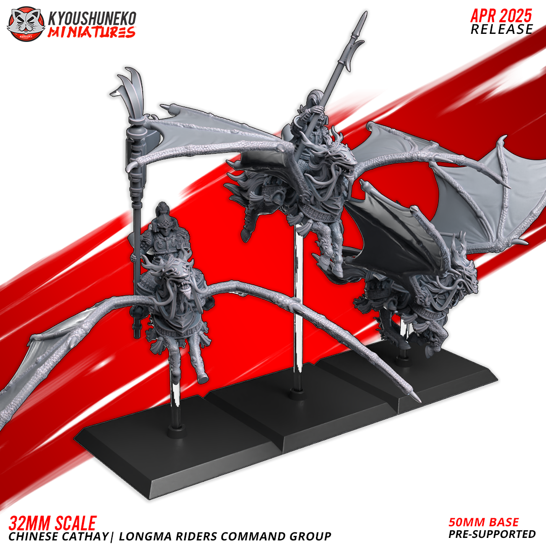 Unidad de Caballería de Cathay para el juego de mesa Warhammer Fantasy y Old World. El producto contiene 3 Miniaturas de Jinetes del Dragón G.Mando.