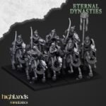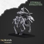 Unidad de Caballería de Reyes Funerarios para el juego de mesa Warhammer Fantasy y Old World. El producto contiene 5 Miniaturas de Jinetes Esqueleto con Arcos posibilidad de distintos tamaños.