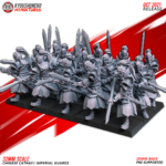 Unidad de Infantería de Cathay para el juego de mesa Warhammer Fantasy y Old World. El producto contiene 10 Miniaturas de Lanceros de Jade Pesados con posibilidad de distintos tamaños.