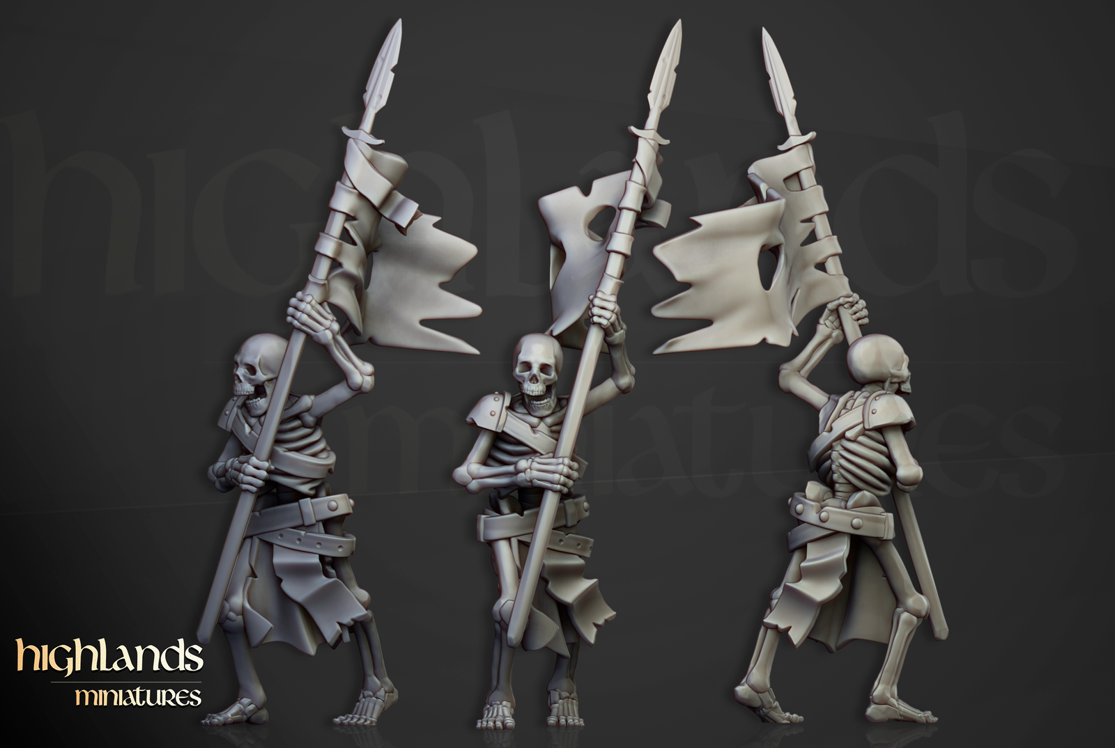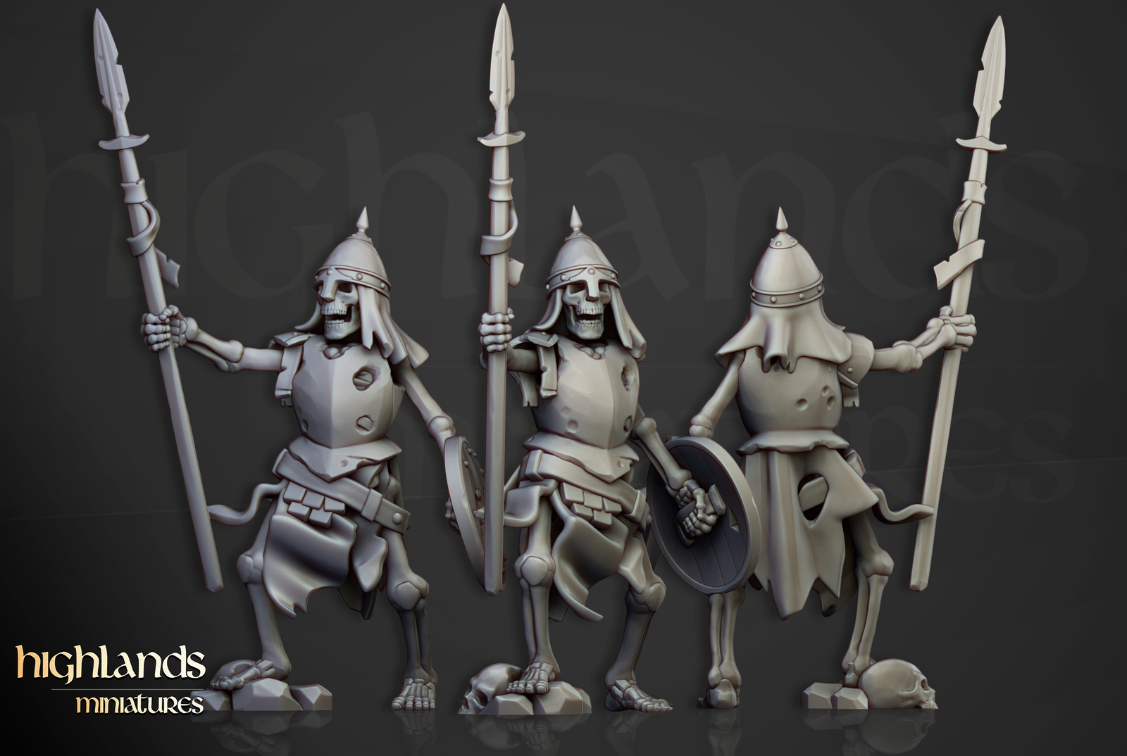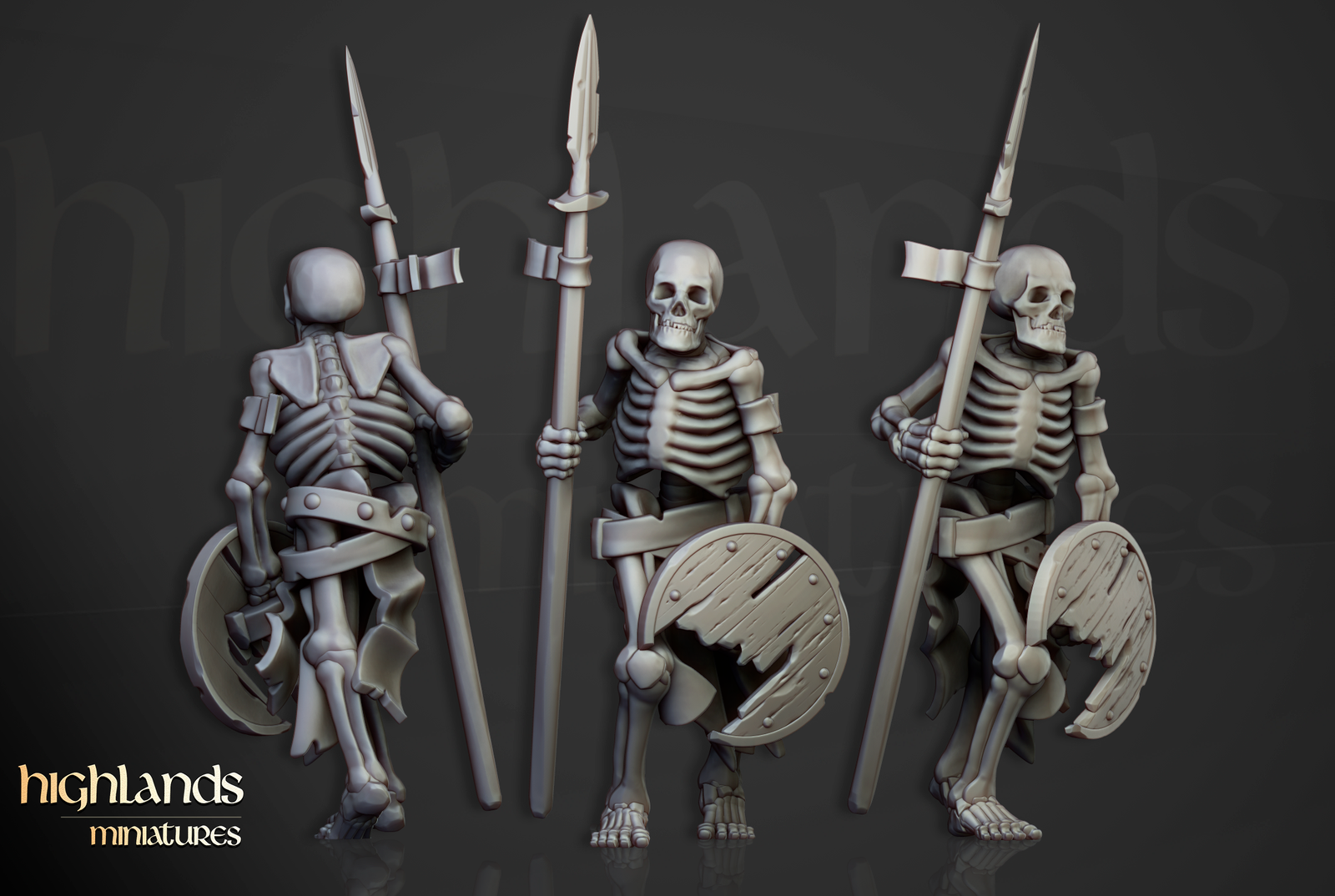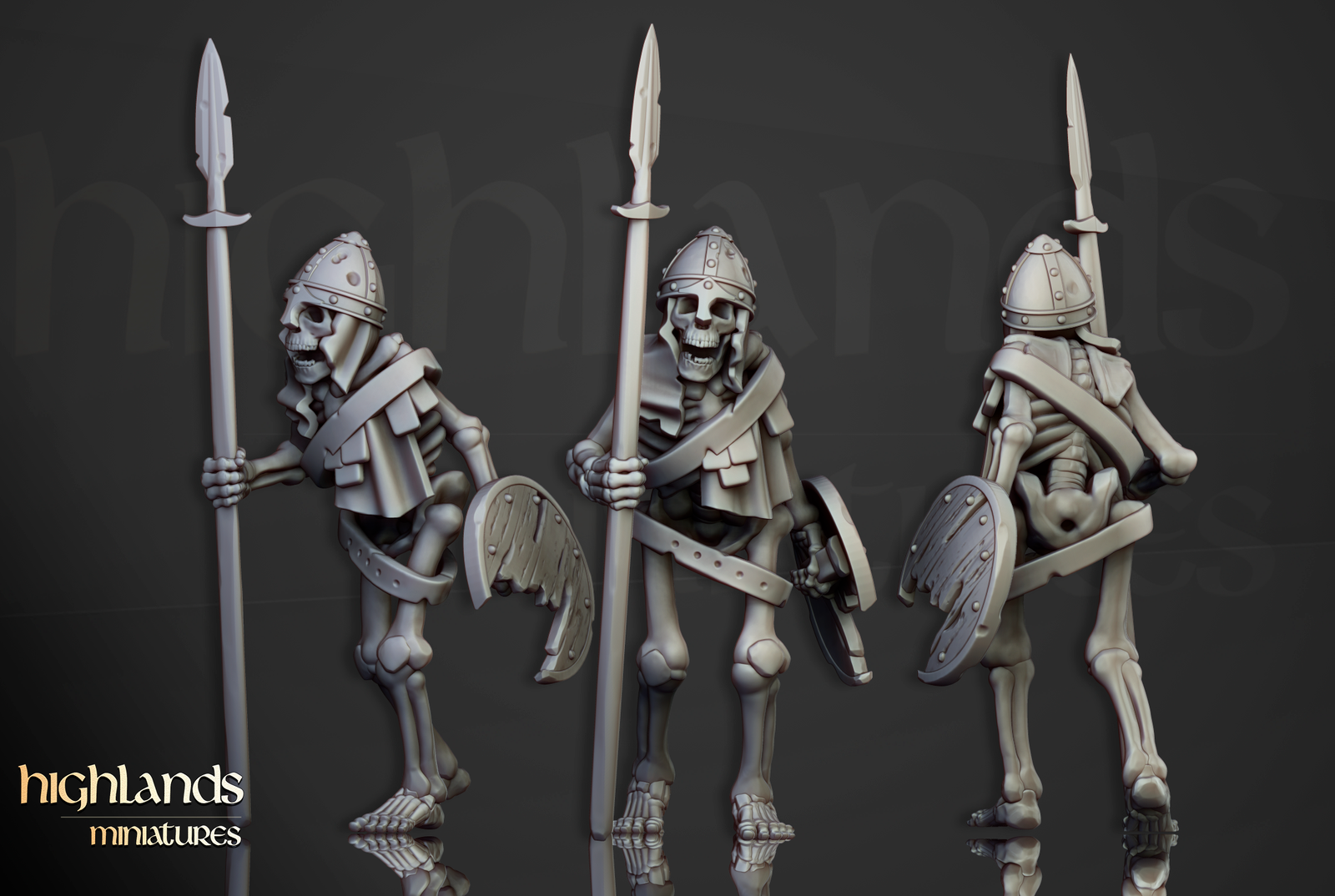 Bajo el barro yacen los huesos de estos guerreros ancestrales y resentidos. Como llevan tanto tiempo enterrados, sus armaduras están oxidadas y sus manos inertes aún sostienen las espadas, hachas, lanzas y escudos que sujetaban en vida. A menos que sus restos no hayan sido bendecidos por los ritos de Morr, un Nigromante o Vampiro puede usar las energías espirales de la Magia Oscura para inculcarle un hálito de vida y un destello del espíritu de estos guerreros durmientes.