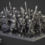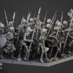 Unidad de Infantería de Condes Vampiros para el juego de mesa Warhammer Fantasy y Old World. El producto contiene 10 Miniaturas de Lanceros Esqueletos con posibilidad de distintos tamaños.