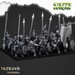 Unidad de Infantería de Orcos y Goblins para el juego de mesa Warhammer Fantasy y Old World. El producto contiene 10 Miniaturas de Lanceros Goblins con posibilidad de distintos tamaños.