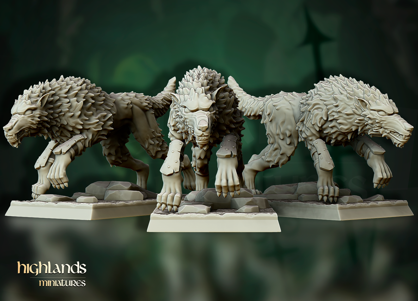 Unidad de Caballería de Condes Vampiros para el juego de mesa Warhammer Fantasy y Old World. El producto contiene 5 Miniaturas de Lobos Espectrales con posibilidad de distintos tamaños.