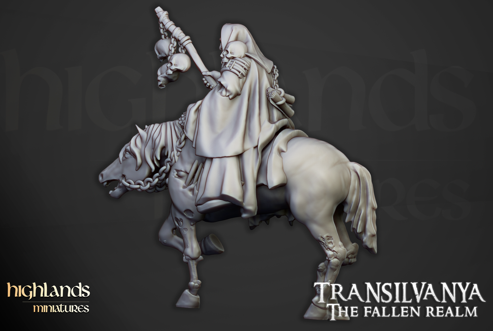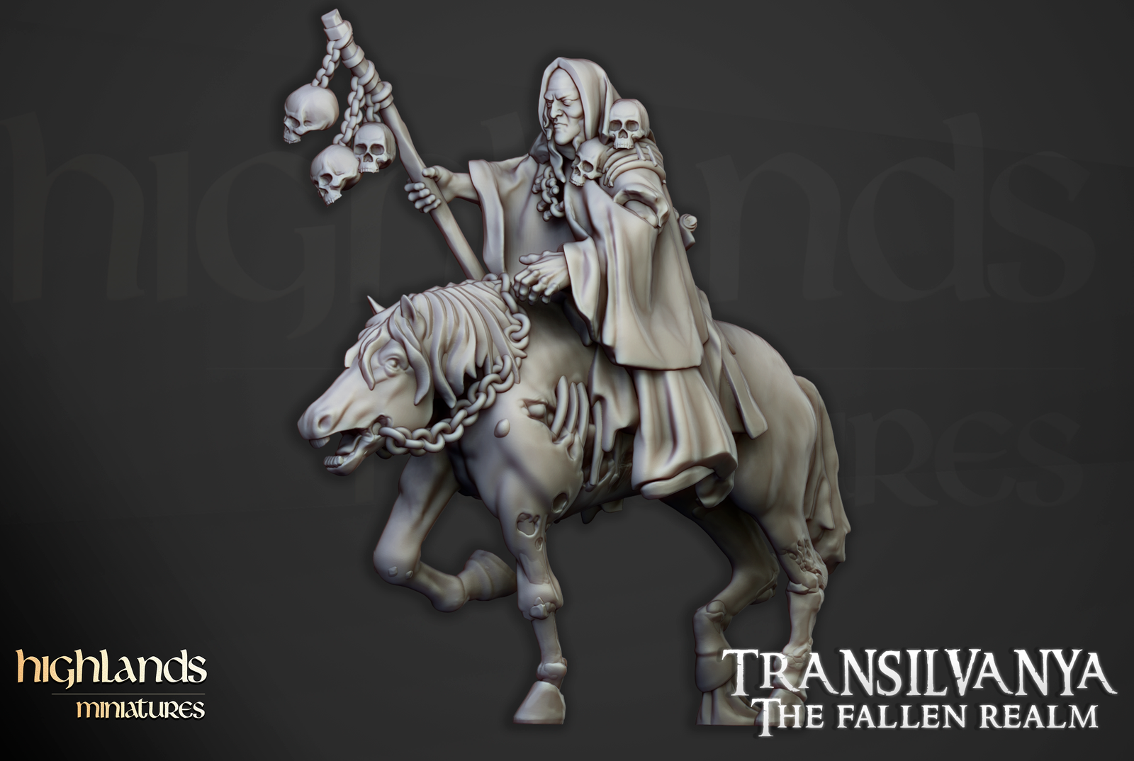 Unidad de Héroe y Personajes de los Condes Vampiros para el juego de mesa Warhammer Fantasy y Old World. El producto contiene un Nigromante a Caballo.