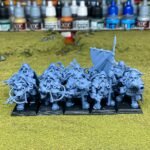 Unidad de Infantería de Enanos para el juego de mesa Warhammer Fantasy y Old World. El producto contiene 10 Miniaturas de Montaraces con ballesta enanos con posibilidad de distintos tamaños. Marca Highlands Miniatures.